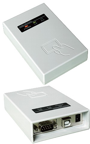 ICR-700-Aは、USBとRS-232Cの2種類のインターフェースを備えたICカードリーダー。オフィスのPCに直接つないで利用する形はもちろん、専用の勤怠管理端末や各種システム機器に組み込んで使う形にも対応しています。電源はUSB接続時にバスパワーで供給できるため、別途アダプタを接続する手間はありません。