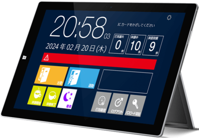 オフィスではICカードとタブレットPCで打刻し、外出先やテレワーク時にはスマートフォンから打刻できるなど、勤務スタイルに合わせて打刻方法を選べる点も特徴の一つ。共用端末の前に並ぶ必要がないため、直行直帰や現場作業が多い職場でも、場所に左右されずに勤怠記録を行えます。